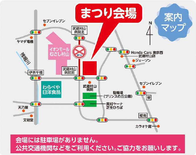 会場に駐車場はありませんので、公共交通機関等をご利用ください。