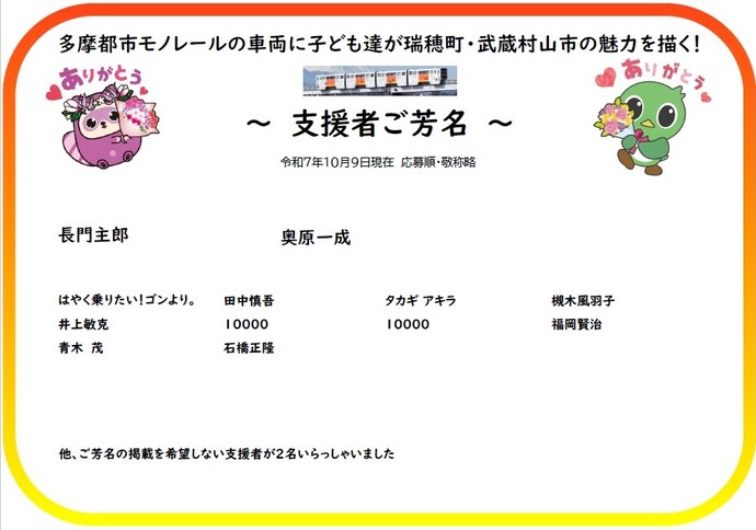 新たに多摩都市モノレール沿線市町となる、武蔵村山市と瑞穂町が共同し、子ども達が描く「まちの魅力」を多摩都市モノレールの車両にラッピングして走行させるプロジェクトを実施します。