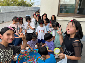 「早くシャボン玉やりたい!」と意気込む2〜4年生たちに反して、「シャボン玉やらない」と意外にも消極的な1年生たち…。でも、楽しそうにしていたお友達を見たからなのか「やっぱりやる〜」と言ってきた姿が微笑ましかったです。